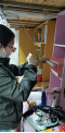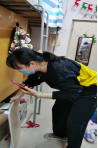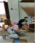 刘霞老师,一进到员工寝室就忙个不停,一边和员工视频,一边收拾物品。由于要到床上收拾被子蚊帐,她不顾危险和个人形象,爬上1米多高的床铺收拾东西。她说:“想起了当初送自己的女儿上学为她铺床的情景,真希望我们的付出能换来同学们行稳致远!”