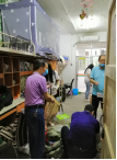 上午8点,外院的教职工们一起来到预定地点,教师、教授、博士、教辅人员、院领导、辅导员们,大家一起上阵。按照事先方案分工,大家或一对一服务,或3人一组,或5人承包一个寝室,井然有序的开始了紧张忙碌的工作。大家分工协作,女教师发挥心细的优势,边与员工视频边收拾行李;男教师力气大,楼上楼下一趟一趟来回肩托背扛,冒雨搬运。现场还有宣传部专门联络外院毕业生返校离校工作的陈富民老师协助指挥,逐一登记办理托运手续。外院领导陈丰杰、汪国军、袁在成、张婷婷等逐个楼栋、逐个寝室的跑,为大家订餐、烧水送水、送打包袋和绳子,为大家做服务和后勤保障。