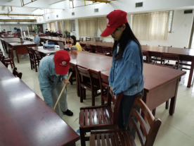 早上7点50分,志愿者们准时于图书馆雕像前集合完毕了解公益活动相关注意事项,随后大家在负责人的带领下有序地进入了图书馆。到达A101现刊阅览室后,图书馆管理员向志愿者们分配了任务,明确了打扫区域,每个人都拿到清洁工具后开始打扫工作。志愿者们分工明确,干劲十足。有的人仔细地拖洗地面,不放过每一个小角落;有的人认认真真地摆放桌椅,帮助拖地的人更方便地进行工作。总体的打扫工作完成后,志愿者们清洗了拖把,并将工具摆放整齐。上午十点,本次清洁图书馆活动在汗水与笑容中结束了。