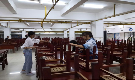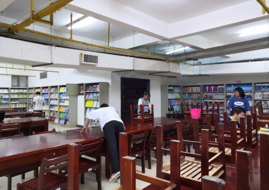 早上集合完毕,志愿者们领取打扫用的抹布和水桶后便正式开始打扫校图书馆,根据分配的区域,志愿者们协调分工,大家齐心协力分工合作,愉快高效的完成了此项任务。在打扫过程中,志愿者们都很注意自己的言行,交流尽量小声,以免影响到阅读室中读者们的学习。勤奋认真、吃苦耐劳的“老带新”志愿精神在外院一届一届的传承。