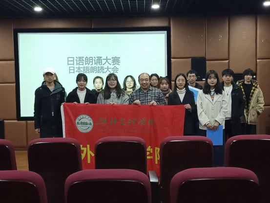 天气虽然寒冷,但参赛人员皆是热情满满,很早便来到了决赛场地,并积极投入到了比赛准备当中。大会在主持人简短而精悍的开场白中正式开始。一首首优美的背景音乐响起,选手们或是饱含深情地低声吟诵,或是激情昂扬地振臂高呼,抑或是像一位饱经沧桑的旅人娓娓述说着自己的过往,带领同学们领略那一个个五彩斑斓的语言世界……在选手们的充满深情的朗颂声中,文字仿佛有了生命,有了具象。似春风,又似夏雨,缓缓滋润着在场每一个人的心田。最后,在主持人的邀请之下,外教神原尚己就此次朗读大赛发表了自己的见解,而后全体参赛人员一起合影留念,大赛取得圆满成功。
