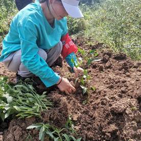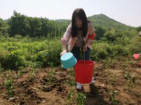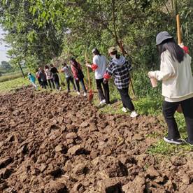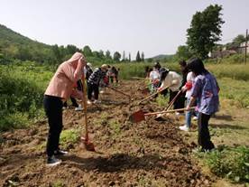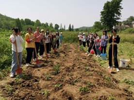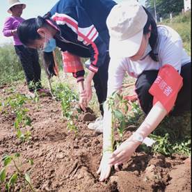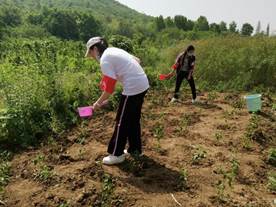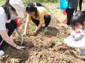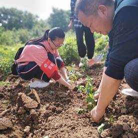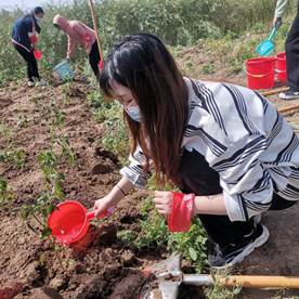 同学们扛着锄头,提着水桶来到了“躬耕园”,在村民现场指导下,挖地、松土、栽菜苗、浇水。大家欢声笑语,体验劳动快乐。员工尹光敏说:“通过这次劳动我学习到了如何排坑、培土、栽菜苗,真正体会到了每一粒粮食都不易,我们要珍惜劳动成果。”