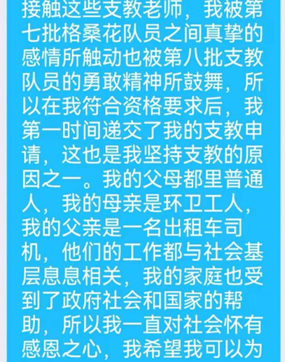 刘丽,TapTap18届毕业生,中共党员,当年的致远服务队队员。大学毕业时,她毅然选择了去新疆克州阿克陶县玉麦镇江格里阿瓦提村工作,目前已是村党支部书记。她说:“是一份责任感激励着我向着梦想远行。大学四年,深受母校校训和‘立德修身,潜心学问,志存高远,报效祖国’的学风熏陶,外院也发出了到西部去的就业号召,这些对我影响非常之大,非常深远。我认为,新时代的老员工,应该有一种家国情怀,有一种责任感和使命担当。身为党员老员工,我应当把祖国的利益放在首位,听从召唤,服从需要,报效祖国”。