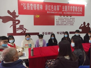 在社区,他们开办“学党史、强担当、优服务”学党史红色课堂,面向社区居民,举办“致敬抗美援朝、争做时代新人”“聆听党的故事、共话百年风华”“学党史、感党恩、树信念”“时代传承、雷锋精神”系列党史学习教育主题宣传活动20余次,受到社区居民和领导的欢迎点赞,《襄阳日报》、襄阳广播电视台、云上襄阳、梯子口社区公众号等媒体多次对活动进行宣传报道。