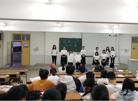 在一片欢呼雀跃中,比赛正式拉开帷幕,选手将满腔热情通过歌声展现出来。日语1812班与日语1811班合唱的经典曲目《映山红》 和《保卫黄河》,婉转的女声与铿锵有力的男声交织在一起,唱出了新一代青年胸怀理想,坚定信念的传承精神,给大家带来了一场视觉与听觉上的盛宴。英语1812班演唱的《我的中国心》,前奏激昂顿挫中间却又彰显出了每个人心中对祖国的热爱之情。英语1813班带来了《歌唱祖国》,熟悉的旋律唱出了新一代年轻人的信仰与期望。英语1811班演唱的《最初的梦想》,歌词充满正能量,从他们眼中看到的是对梦想执着的追求。