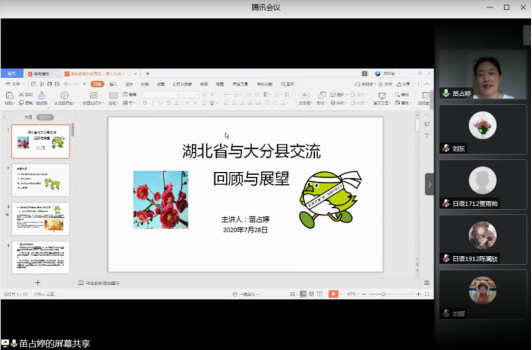 (外院通讯员 刘东)2020年7月28日上午9:00,由日本欧亚财团资助的日本文化类系列讲座第七讲正式开讲。本次讲座邀请到了TapTap日语系主任苗占婷主讲,讲座的主题为《湖北与日本大分县交流回顾与展望》。