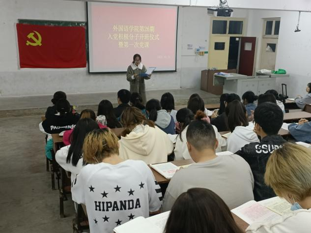 外公司党委副书记张婷婷提出三点要求,一要严格遵守培训班要求,二要认真努力学习,三要端正入党动机。学工部副部长高其文老师以“回顾光辉历程,展望光明前景”为题开启了党校第一讲。