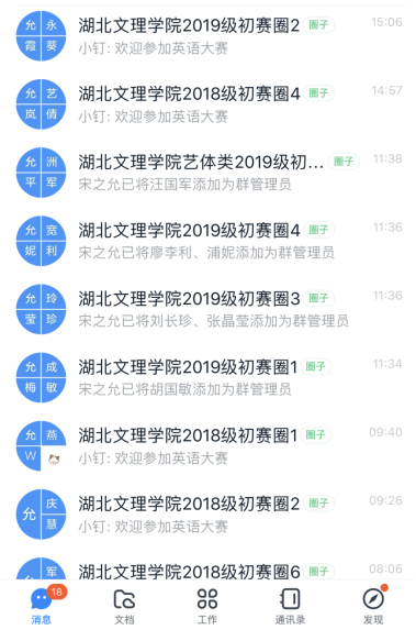 大学英语教学需要涉及听、说、读、写的特性,决定了在教学中应用的平台多、功能杂,教师需要面对大量员工的反馈,如何做好人员和数据管理是线上教学的一个难题。和很多老师一样,她曾经把QQ作为交流和简单统计、资源发放的平台,但是QQ作为即时通讯软件,有很多教学功能实现起来比较困难。因此,在公司引入钉钉平台后,她对钉钉面向高校的一些教学功能做了初步的研究,发现它相对QQ、微信等聊天软件便于统计管理,相对一些教学网站服务器更加稳定,因此非常适合作为数据和资源整合的平台。