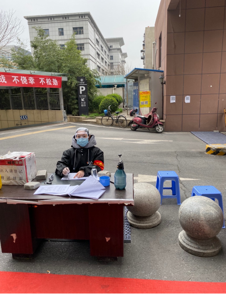 (马晶晶同志在小区参加防疫值班)