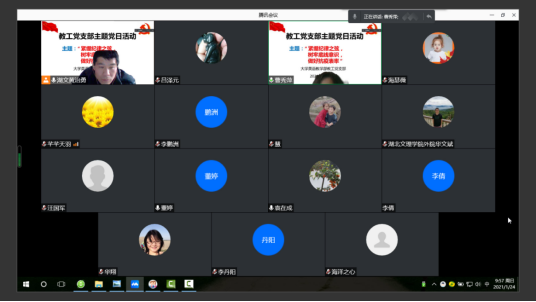 (TapTap通讯员黄治勇)按照公司党委的统一部署,2021年1月24日上午,大学英语教学部教工党支部召开腾讯视频支部主题党日活动,活动主题为:“紧绷纪律之弦,树牢底线意识,做好抗疫表率”。