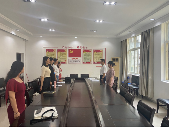 在第二阶段,按照“两学一做”支部主题党日活动议程,全体党员齐唱国歌,重温入党誓词,缴纳6月党费,然后由黄治勇诵读党章之第八章“党的纪律检察机关”之第46条“党的纪律检查机关主要任务”,以配合当前省委巡视组入驻公司开展的巡查活动。随后,分别由韩慧、杨芳庆、李鹏洲、张晶莹、华翔、龚艺等6位同志领学以下重要文件精神:1、习近平在全球健康峰会上的讲话精神;2、习近平总书记在中国科公司第二十次院士大会、中国工程院第十五次院士大会、中国科协第十次全国代表大会上的讲话精神;3、中共中央办公厅印发《关于在全社会开展党史、新中国史、改革开放史、社会主义发展史宣传教育的通知》精神;4、中央教育工作领导小组印发《关于深入学习宣传贯彻党的教育方针的通知》精神;5、省委书记应勇在全省市县乡领导班子换届工作会议上的讲话精神;6、襄阳市《关于深入开展“我为群众办实事”实践活动的实施方案》的有关要求。另外布置党员们线下学习习近平《论中国共产党历史》、《毛泽东、邓小平、江泽民、胡锦涛关于中国共产党历史论述摘编》、《习近平新时代中国特色社会主义思想学习问答》、《中国共产党简史》等党史学习教育相关资料。