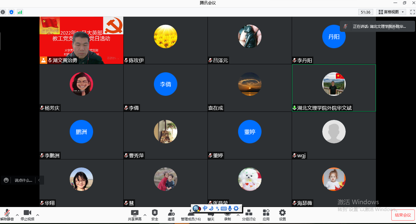 (外院通讯员 李 倩)2022年1月23日上午,大学英语教学部教工党支部以腾讯会议形式开展线上1月支部主题党日活动,活动主题为:“阔步新征程 奋力开新局”。会议由支部副书记黄治勇主持。