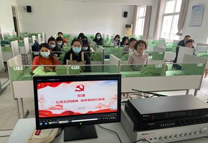 本月支部主题党日开展传承红色家风主题活动,由王瑛带领大家学习“红色家风”党课。在专题学习环节,由曹聪带领大家学习微党课:弘扬“五四精神 培养新时代青年”,组织党员教师们重温五四运动及其历史意义并结合习近平总书记在庆祝中国共产主义青年团成立100周年大会上的讲话重新认识当代青年的责任和使命。