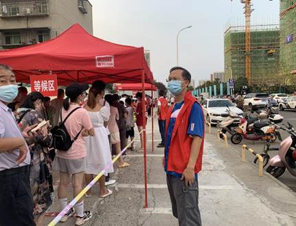 两天来,外院全体党员领导和党员干部纷纷投入到双报到志愿服务活动中来,下沉参与疫情防控的副处级以上干部4人、下沉参与疫情防控的其他党员干部8人次。他们或顶烈日抗酷暑在核酸检测点做志愿者,或坚守在小区门岗,协助排查外来和返襄人员,宣传动员居民做核酸检测,提醒行人佩戴口罩。他们担当作为,充分汇聚疫情防控工作的合力,为人民群众的健康和生命安全共同构建了可靠屏障,让居民既放心安心,又暖心舒心。