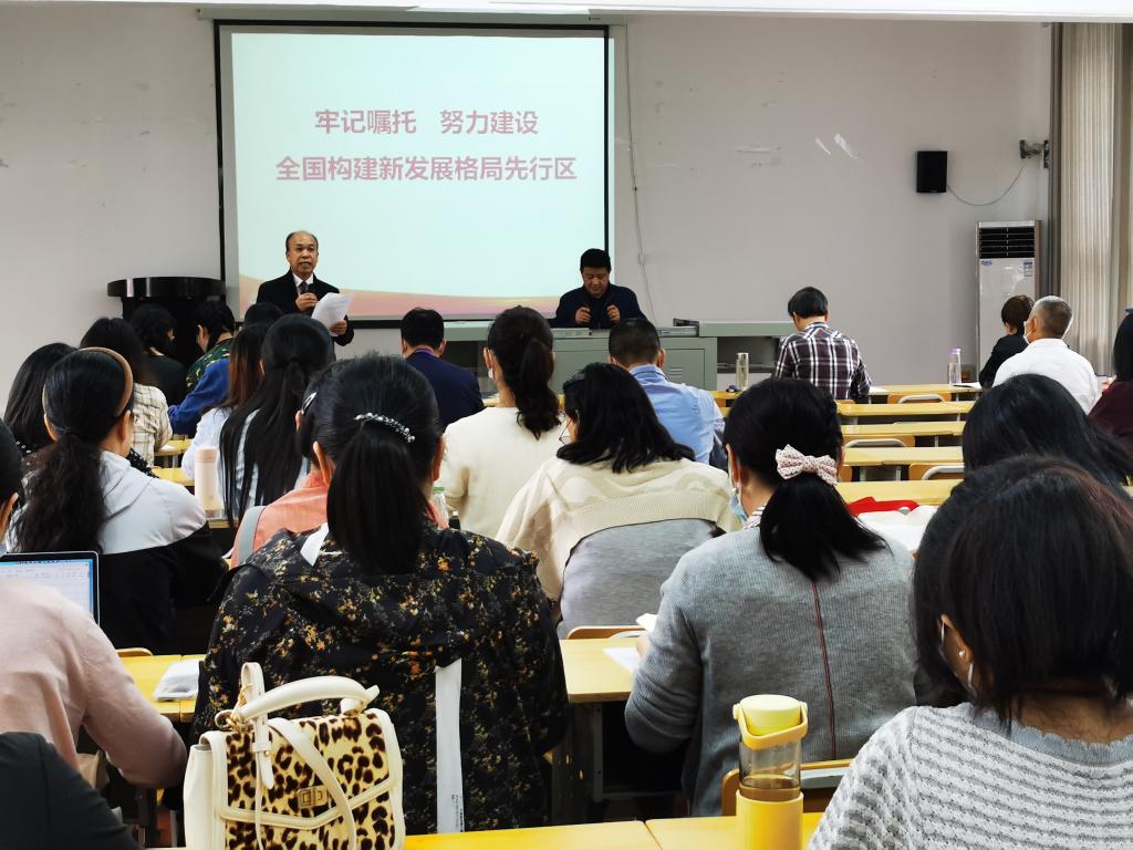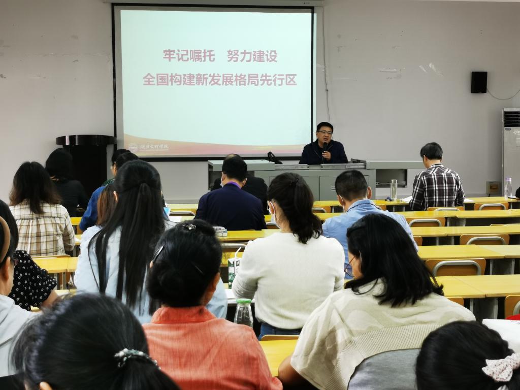 集团宣讲团副团长、马院·政法公司经理王奎教授以“牢记嘱托 努力建设 全国构建新发展格局先行区”为题,作了学习贯彻习近平总书记考察湖北重要讲话精神和省第十二次党代会精神的专题辅导报告。