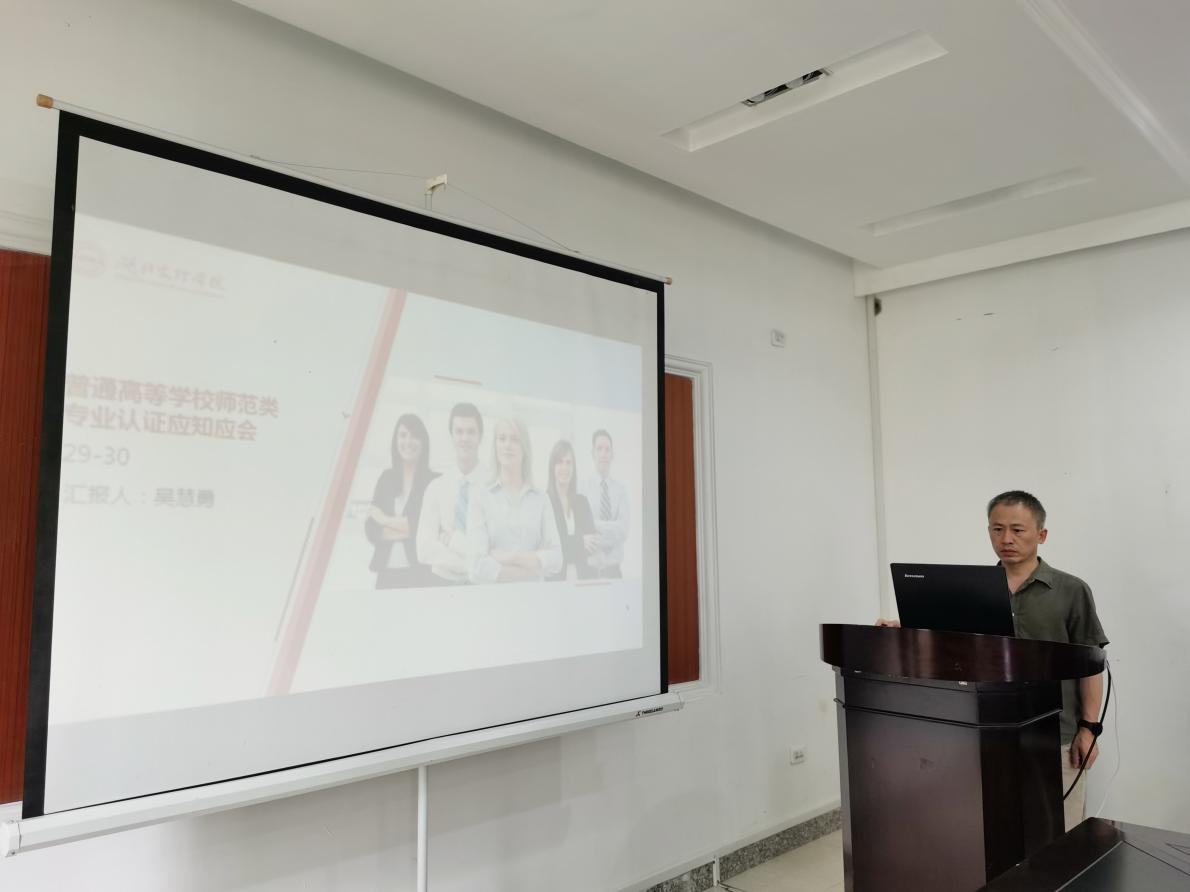 (外院通讯员 吴慧勇、王 瑛)2023年6月8日,TapTap英语师范专业认证应知应会第十六讲在一楼会议室展开,主讲人吴慧勇,英语系全体教师参加。讲座的主要内容包括:在师范类专业认证中,对承担学科专业课程的教师的新要求,师范类专业应怎样树立“产出导向” 的人才培养观。
