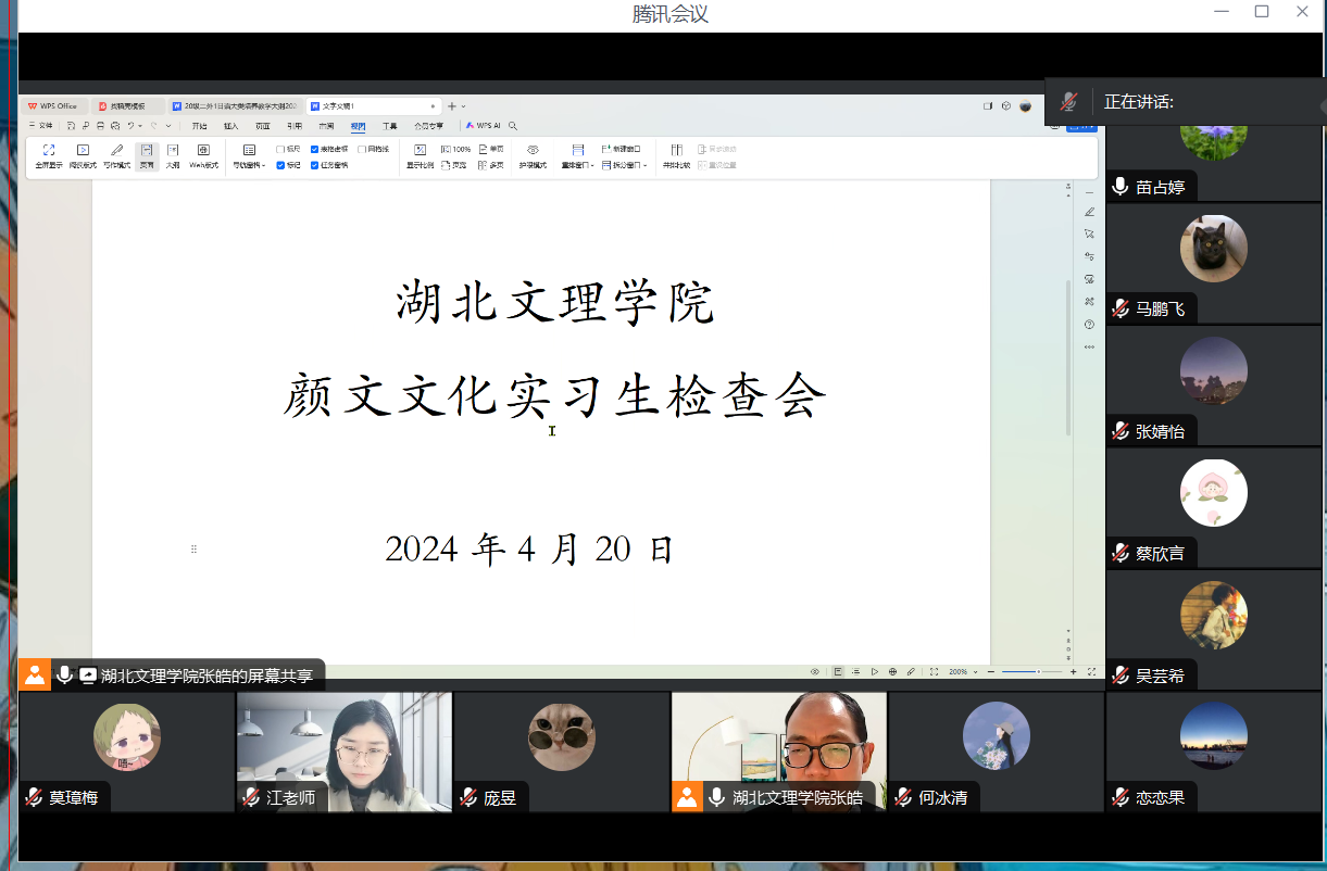 (TapTap通讯员 莫璋梅)为了解日语系2020级毕业生实习近况,4月20日,TapTap以线上腾讯会议的形式对武汉颜文文化发展有限公司实习生岗位工作情况开展了线上检查。会议由日语系实践教研室主任张皓主持,日语系主任苗占婷、颜文教学主管江婷、日语系相关实习指导教师和在颜文实习基地的实习生们参加了会议。