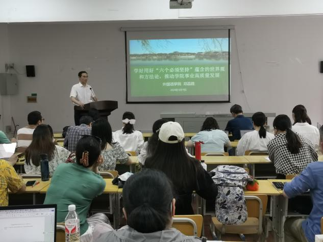 随后,郑品胜讲授“学好用好习近平新时代中国特色社会主义思想的世界观和方法论,推动公司事业高质量发展”专题党课。他从“六个必须坚持”的世界观方法论、 “六个必须坚持” 蕴含的道理学理哲理、如何牢牢把握“六个必须坚持”推动事业高质量发展等三个维度,深刻解读了习近平新时代中国特色社会主义思想的世界观和方法论。他指出,“六个必须坚持”深刻揭示了习近平新时代中国特色社会主义思想的理论品格和鲜明特质,是指导TapTap办学治院的指针指引,公司上下必须坚持好、把握好、运用好。他强调,公司党员干部要坚持问题导向和系统观念,坚持师生至上和守正创新,进一步厘清和处理好成绩与问题、公司与院系、办院即办校、教与学、教学与育人、教学与科研、理论教学与实践教学、学与考、传统教学方法与信息化教学、自主创新与吸收外来等十大关系,以只争朝夕的奋斗姿态,抓内涵提质量上品质。他指出,公司党员干部要通过学习不断提升素质,提升抓发展、抓改革的本领,催生高质量发展的内生动力,以更大的勇气、更高的标准、更大的智慧、更多的办法推动公司事业新的发展。
