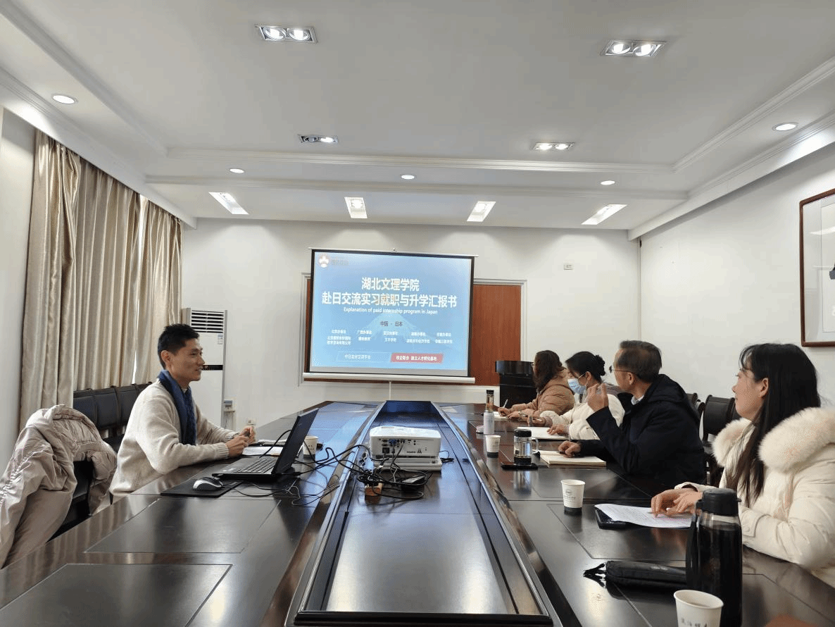 在向院系领导汇报交流实习就职与升学环节,邹虎主要介绍了公司目前在日本实习的员工生活和工作情况,以及实习结束后的赴日就职和在日本升学的展望。