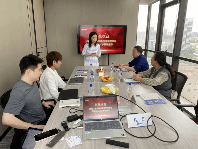 张婷婷等一行深入企业办公区域、教学场所等一线工作场地,实地了解企业的运营模式、业务范围及发展现状,并针对英语专业的专业设置、人才培养特色以及毕业生情况与企业方进行了详细交流。张婷婷强调公司始终坚持以市场需求为导向,致力于培养具有扎实外语功底、跨文化交际能力和创新精神的复合型外语人才,希望与企业建立长期稳定的合作关系,共同探索人才培养与实习就业的新模式。