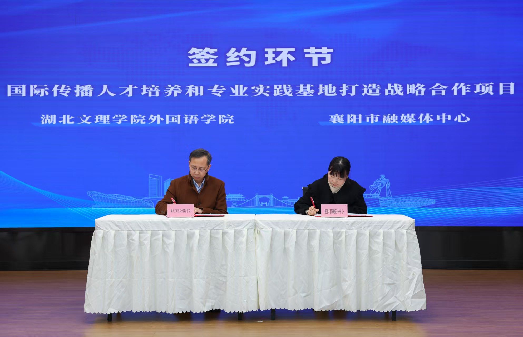 活动现场,袁在成与襄阳融媒体中心党委委员、副主任徐晶就国际传播人才培养和实践创作签订战略合作协议,标志着校媒双方在国际传播领域开启深度合作。