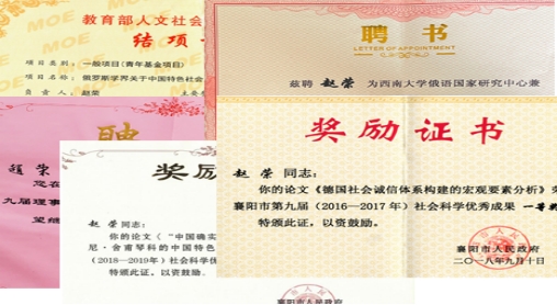 “教而不研则浅,研而不教则空”。赵荣老师始终注重把教书育人和科学研究相结合、相融合,用心教学,潜心科研;以教促研,以研带教。在教书育人的同时,从未间断对科研工作的付出与追求。她始终秉持科学严谨、实事求是的态度,严格遵守学术道德和学术规范,潜心学术,刻苦钻研,取得丰硕成果,被外院的同事们尊称为“学术标兵”“科研达人”。几年来,她先后主持完成了教育部人文社会科学研究青年项目1项,参与国家社科重大项目1项,参与其他各级各类项目多项。在《当代世界与社会主义》、《德国研究》等刊物发表论文10余篇,其中被CSSCI收录3篇。获襄阳市第九届、第十届社会科学优秀成果一等奖2项,被中国科学社会主义学会当代世界社会主义专业委员会纳为理事,被西南大学俄语国家研究中心聘为兼职研究员。